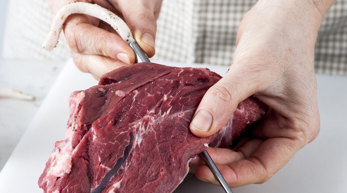 Dato che in cottura l’arrosto tende a perdere morbidezza e umidità all’interno, prima di rosolare la carne potete lardellarla inserendovi striscioline, appunto, di lardo o di pancetta.