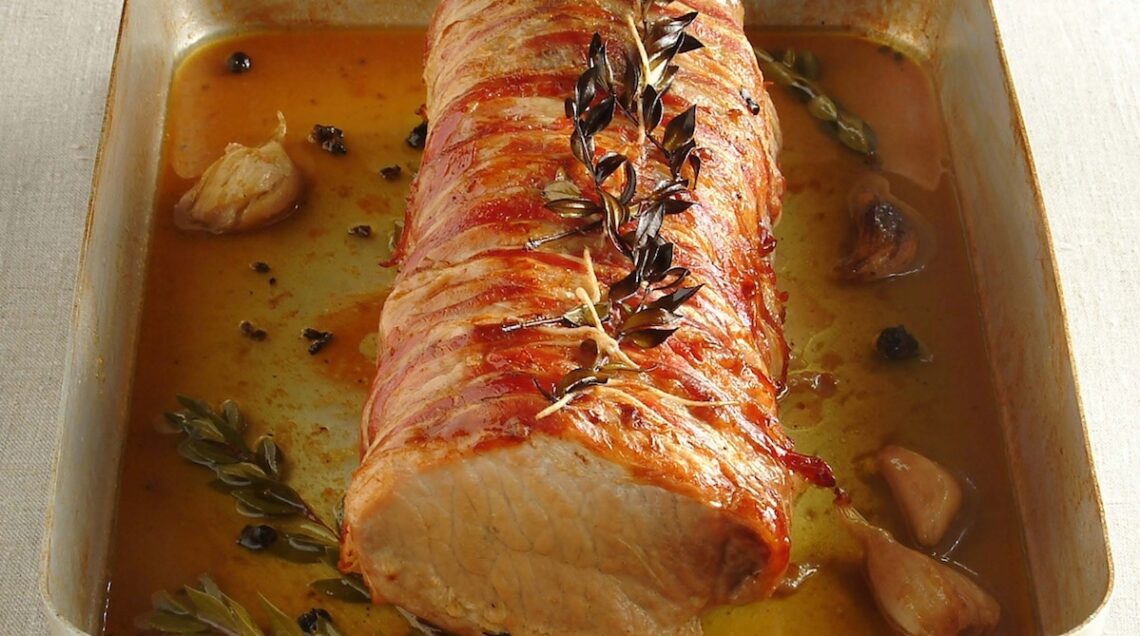 Economica ma saporita e succulenta, la carne suina primeggia a sua volta nelle scelte dei cuochi. La lonza arrosto al mirto della foto sopra è una garanzia di golosità e di morbidezza grazie alla bardatura con la pancetta che ne preserva i succhi nella cottura in forno, mentre questo arrosto al finocchietto impiega lo stesso taglio, ma farcendolo con fichi freschi e lardellandolo con tocchetti di pancetta.