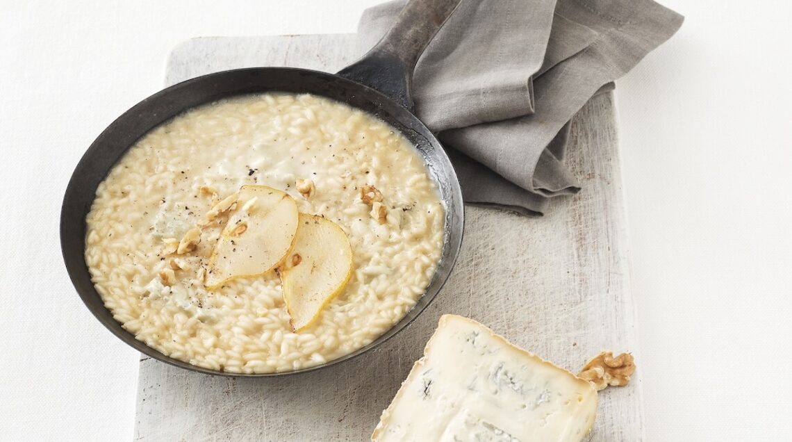 Se al posto del burro per mantecare il risotto vi unirete del formaggio erborinato a tocchetti e delle noci tritate, otterrete invece il risotto al gorgonzola e pere della foto sopra. Una volta nei piatti, rifinitelo con un filo di miele e fettine di pera caramellate in padella con poco zucchero e limone. La scorza grattugiata del limone è un altro jolly da giocare. Lo dimostra questo risotto cremoso al limone e parmigiano, mantecato con una crema di cipollotti cotti e frullati con la scorza dell’agrume e il parmigiano da 24 mesi. Unendo al termine un gustoso intingolo a base di porcini e frutti di bosco otterrete invece questo risotto al parmigiano con funghi e mirtilli, aggiungendo invece una morbida crema vegetale e guarnendo con verdure arrostite servirete un gustoso risotto con crema di cavolo romanesco e radicchio.