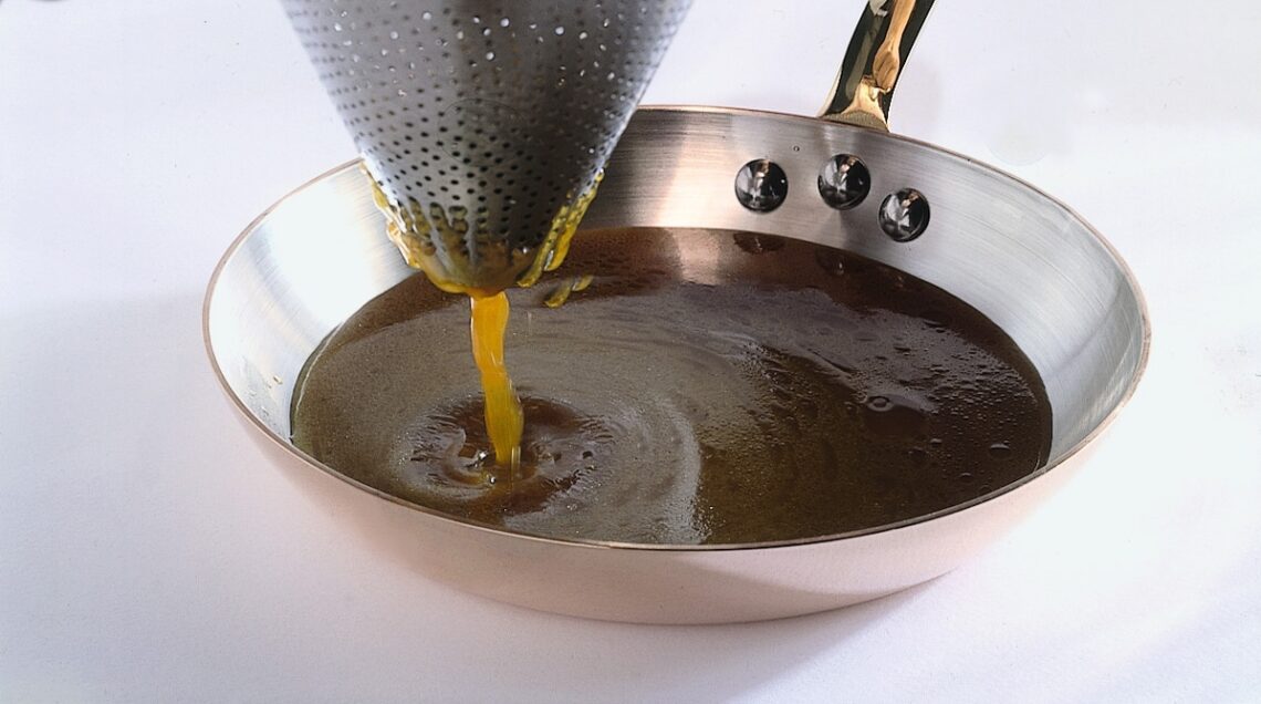Tritata la cipolla, soffriggetela in una noce di burro fuso, nell’olio extravergine d’oliva o con entrambi i grassi sciolti e scaldati in una casseruola larga e dai bordi non troppo alti, possibilmente in rame e dotata di due manici. Eventualmente, andrà bene anche una pentola larga e bassa in acciaio e dal fondo pesante. Quello che conta è che il calore si diffonda in modo uniforme e costante. In questa fase mantenete la fiamma medio bassa, affinché il trito appassisca e si ammorbidisca senza scurire. Per facilitarvi le cose potete aggiungere un goccio di brodo bollente, ma l’operazione non è tassativa.