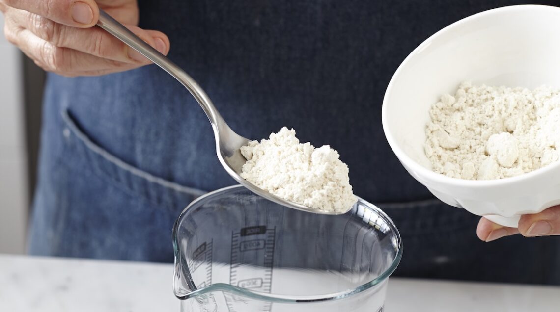 Per ottenere una tazza di questa cremosa variante, versate 30 g di farina di mandorle fine in un bicchiere graduato, aggiungetevi 70-80 ml di acqua e mescolate con una piccola frusta a mano in modo da ottenere un composto lattiginoso.