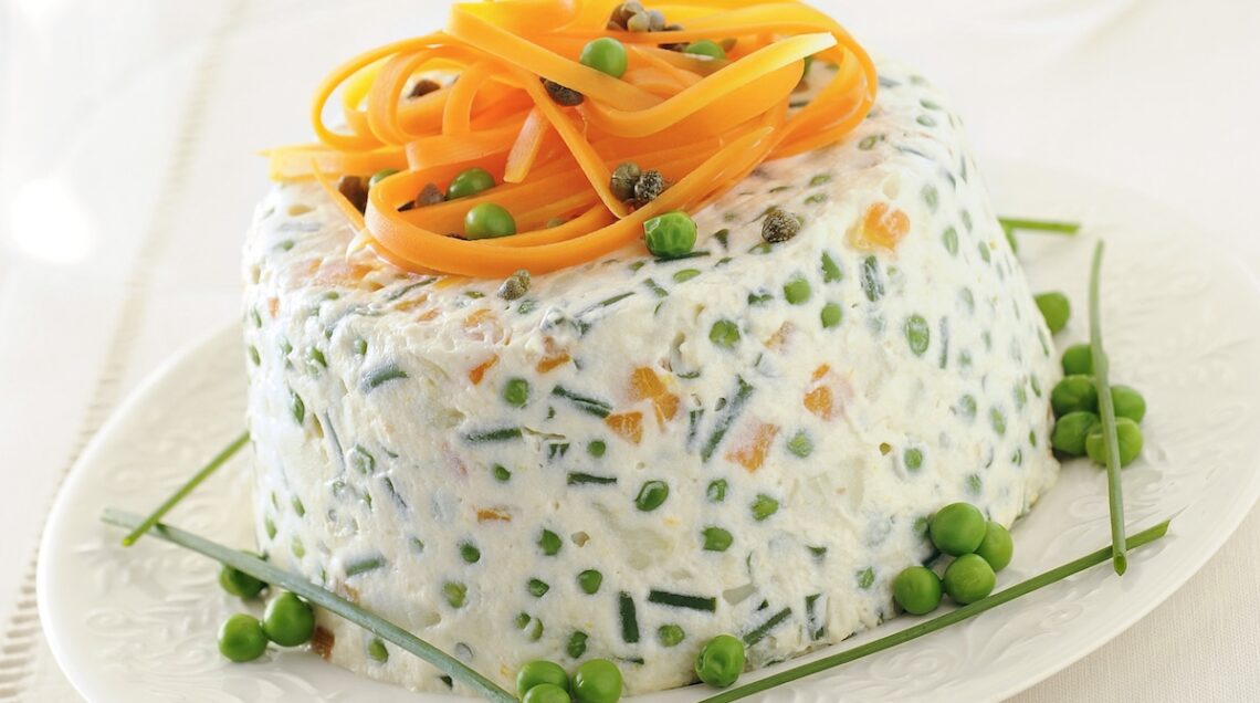 Le varianti veg o comunque senza uova della maionese saranno ottime in tutte le occasioni in cui la ricetta o la vostra golosità richiedono la salsa classica. Detto questo, è anche vero che la scelta di una preparazione priva di ingredienti di origine animale sarà particolarmente adatta a piatti a loro volta prevalentemente vegetali. A cominciare da quelli che in origine prevedevano l’uso della maionese tradizionale. Esemplare è il caso dell’insalata russa vegana che vedete nella foto sopra. Perfetto antipasto in un menu di festa che rilegge la tradizione, questo piatto è stato realizzato unendo alle classiche verdurine la maionese preparata con il tofu morbido. Per dare compattezza al composto, messo in forma in uno stampo, è stato usato l’agar agar.