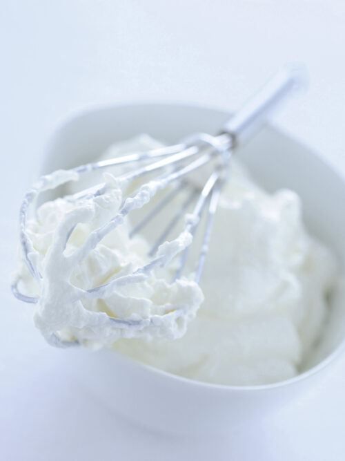 Frusta a mano: consente di avere lo stesso risultato, anche se in più tempo e con un po’ più di fatica. Immergete la frusta nella panna e cominciate a sbattere con un movimento in senso circolare, non troppo energico, aumentando man mano la velocità finché la panna risulterà soda. Girate la frusta sempre nello stesso verso, in senso orario, per non rompere le bolle d’aria.