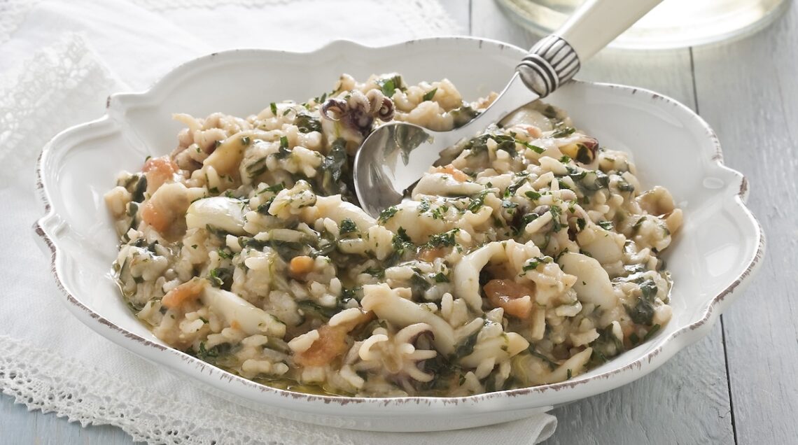 Molti sono i piatti a base di riso come questo risotto alle erbette con capesante, questo alle bietole e puzzone di Moena o, ancora, il risotto con seppie, bietole e pelati della foto sopra, dove il riso viene aggiunto ai molluschi e gli ortaggi precedentemente saltati insieme con un soffritto di aglio e peperoncino.