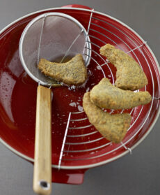 FRIGGERE Valgono le stesse regole adottate per la cottura in una comune padella: il grasso (in genere, olio di arachidi) deve essere abbondante, in modo che i cibi vi stiano immersi, e sufficientemente caldo da dorarli, senza naturalmente che arrivi a fumare. Il vantaggio di friggere nel wok è che offre una superficie ampia di frittura ma, andando a restringersi, permette di usare meno olio rispetto a una comune casseruola.