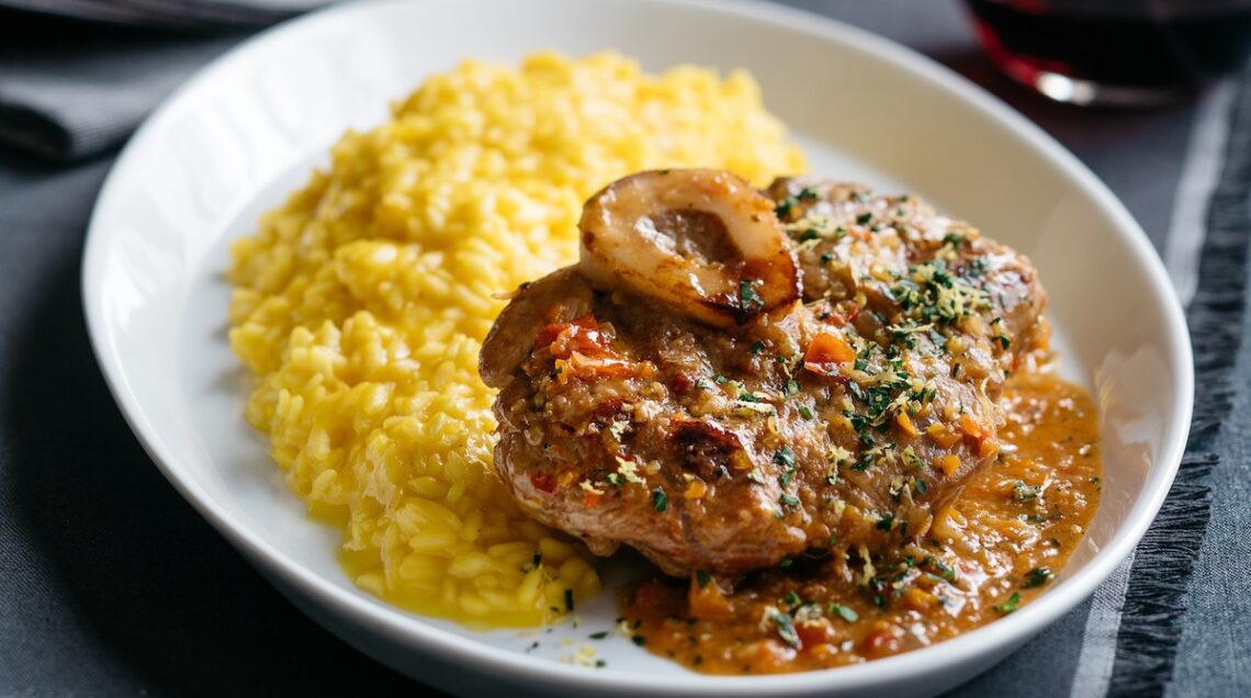 Tagliando a fette il geretto posteriore, il macellaio ricava gli ossibuchi con midollo, che richiedono tempi di cottura più brevi e sono alla base di un classico della cucina regionale come l’ossobuco alla milanese (foto sopra). Cucinato intero questo stesso taglio potrà prendere la forma di stinco arrosto oppure dare vita a un ottimo brodo.