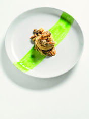 Spaghetti alla chitarra con ragù bianco di pescatrice e carciofi