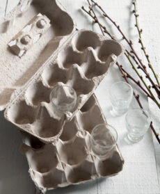 Proseguite alternando altezze, dimensioni e colori in modo da ottenere delle composizioni armoniose. Trasferite i bicchierini nel portauova di cartone e posizionateli a distanza regolare.