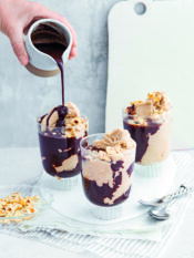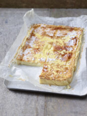 Trasferite la spugna su un tagliere e, con un coperchio, imprimete sulla superficie un cerchio del diametro leggermente inferiore a quello del secchiello; tagliatela con un coltello lungo l’incisione in modo da ottenere un cilindro e mettetelo sul fondo del secchio.
