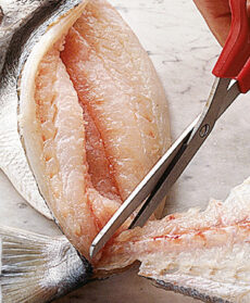 Nel tagliare, penetrate con il coltello in profondità ma fate ben attenzione a non trapassare la polpa del pesce.