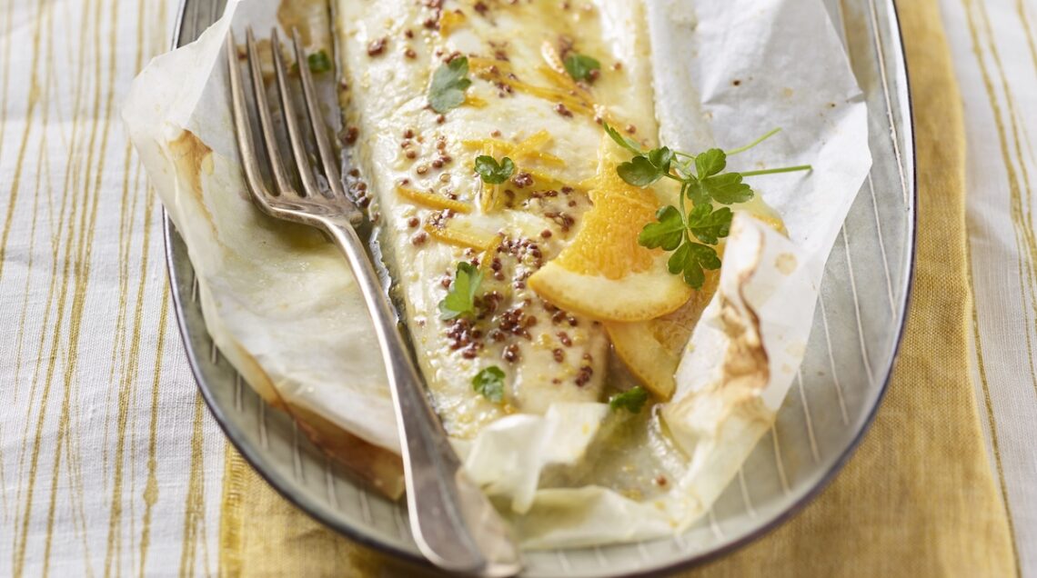 Restando tra le ricette di branzino al forno potete anche scegliere di cucinare il pesce al cartoccio. Tra le tante ricette possibili, questa del branzino al forno nel cartoccio farcisce e accompagna il pesce con una dadolata di verdure miste, capperi e fettine di limone. Un filo di olio e una spolverizzata di sale e pepe completano il condimento. Utilizzando invece i filetti potrete cucinare questo branzino alla senape e arancia (nella foto sopra), insaporito con miele, succo di agrumi e senape rustica.