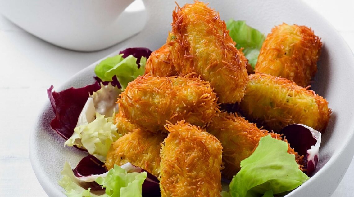 Se vi è avanzato del branzino già cotto, potrete realizzarvi queste crocchette in crosta di capelli d’angelo. Dovrete formare un impasto con la polpa pulita mescolata con purea di patata bollita, grana e uovo, formare delle polpettine, passarle nella pasta spezzettata e poi friggerle. Sempre fritto, ma più semplicemente passandone i filetti freschi nella semola è questo branzino ai carciofi e porri croccanti, mentre fritto e poi cotto nella tipica pentola in coccio maghrebina è il pesce di questa tagine di branzino alla charmoula.