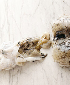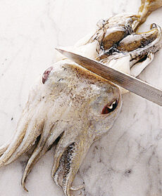 Separate ora il corpo dai tentacoli: per fare questa operazione, tenete la sacca con una mano e afferrate con l’altra la testa, appena sotto gli occhi.