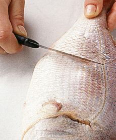 La cottura di un pesce presuppone una serie di fasi preliminari che vanno dall’eliminazione delle pinne alla sventratura, alla squamatura e così via. Queste operazioni, in genere, sono ritenute lunghe e laboriose, tuttavia è importante saperle fare e anche bene. Come prima operazione mettete il pesce su un tagliere e cominciate a eliminare le pinne. A questo proposito tenete presente che quelle dorsali sono profondamente piantate nella carne. Se toglierle vi riesce piuttosto difficile, niente paura, lasciate perdere: potrete eliminarle facilmente quando il pesce è già cotto.Poi procedete alla squamatura e infine alla sventratura del pesce, che può essere fatta attraverso l’apertura che è sotto le branchie se il pesce è grosso oppure con una incisione nel ventre se il pesce è piccolo o medio oppure se è piatto. Per tutte le operazioni di pulitura ci sono gli appositi utensili, per esempio gli spelucchini (coltellini a lama curva) e lo squamatore. Se non li avete, usate un normale coltello purché con lama ben affilata per non rovinare la carne delicata del pesce.