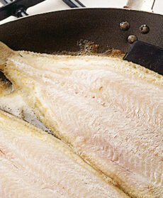 Adagiate i pesci nel condimento bollente senza sovrapporli e fateli dorare da un lato. Poi voltate le sogliole con una o 2 palette, a seconda se sono più o meno grosse, facendo attenzione a non romperle, quindi fatele dorare dall’altro mantenendo il fuoco vivace.