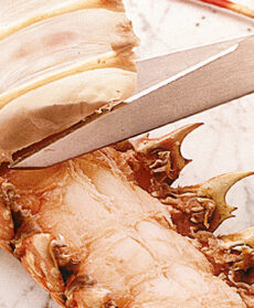 Mettete il crostaceo con la pancia verso l’alto e staccate le zampe il più possibile vicino al corpo. Spezzate le zampe in corrispondenza delle articolazioni e, con uno spiedino, estraete le sottili strisce di polpa;