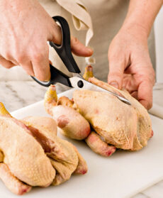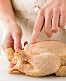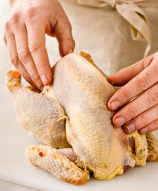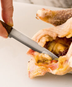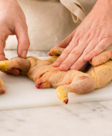 Poi si appoggia sul tagliere con il petto verso l’alto e si schiaccia con il palmo della mano.