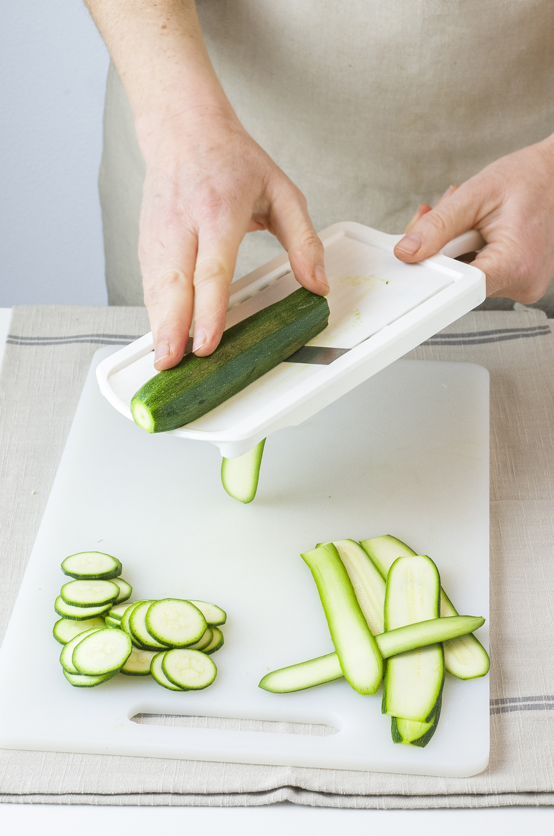 Delle zucchine si butta via veramente poco. Per sapere come pulire le zucchine basta dire che vanno spuntate solo le due estremità, togliendo la parte che le teneva unite alla pianta e quella sulla quale cresceva il fiore. In tutto non si butta via più del 10% dell'ortaggio. Se le zucchine acquistate sono particolarmente ricche di semi, meglio eliminarli. La buccia verde invece può essere mantenuta: la maggior quantità di fibre si trova qui. Una volta pulite, a seconda della ricetta che si intende preparare, ci sono diversi modi per tagliare le zucchine. Ad esempio, se le si vuole grigliare, ci si potrà aiutare con un mandolina per ottenere fettine sottili, passando lo strumento su tutta la lunghezza dell'ortaggio. Le si può affettare a rondelle o eseguire un taglio brunoise, che consiste in una dadolata molto piccola, usata in genere per le ricette con zucchine crude. Per ottenere dadini perfetti, bisogna tagliare le zucchine in quattro parti, seguendo la parte lunga, poi ridurle a dadi di circa 2 centimetri per lato. Oltre a consumarle crude, in questa forma le zucchine ben si prestano a minestre o cotture in umido. Aiutandosi con una grattugia o a mano si può realizzare il taglio a julienne o a fiammifero, ottenendo bastoncini lunghi, perfetti per le fritture.
