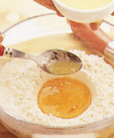 Con una frusta a mano sbattete gli ingredienti dal centro verso i bordi, diluendo con un bicchiere di latte oppure di birra o di vino bianco.Quando la pastella sarà omogenea, copritela e lasciatela riposare per un’ora a temperatura ambiente.