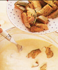 Immergete nella pastella i pezzi di verdura, sgocciolateli bene e tuffateli in abbondante olio caldo.