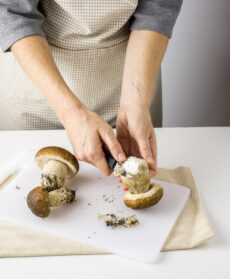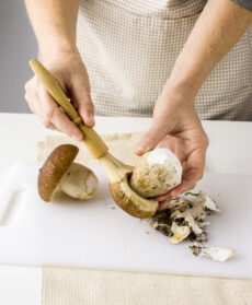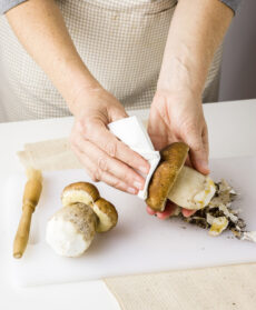 I porcini sono senza dubbio tra i funghi spontanei più apprezzati, insieme a ovoli e finferli. La pulizia non è complicata, solo un po’ lunga e “noiosa”: si tratta, infatti, di eliminare ogni traccia di terriccio e altre impurità (compresi piccoli insetti!) agendo con delicatezza, per non rovinare questo prodotto tanto pregiato.