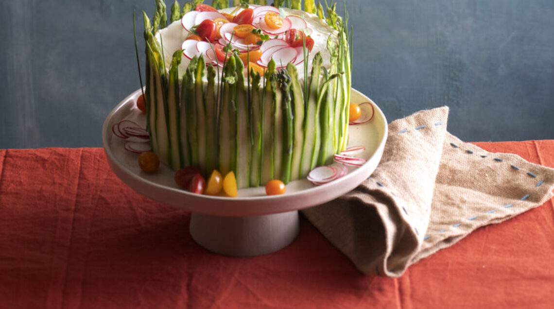 In questa ricetta si propone di realizzare una torta molto scenografica che ha come protagonisti proprio gli asparagi uniti ad un'altra serie di ingredienti come il tonno, le uova, la maionese, i pomodori, il mascarpone, davvero perfetta per le occasioni speciali e per imbandire le tavole in primavera.