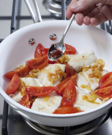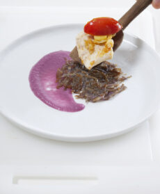 Le patate violette incontrano la cipolla di Tropea e sposano la delicatezza del pesce persico. Irresistibile mix di sapori e colori regalano un secondo gourmand