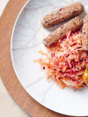 Lavate le pesche e scottatele in acqua bollente per 30 secondi. Scolatele, sbucciatele, tagliatele a metà ed eliminate il nocciolo.