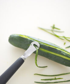 Lavate i cetrioli, asciugateli ed eliminate le estremità; poi, con il rigalimoni, asportate alcune strisce di buccia disegnando tante strisce parallele nel senso della lunghezza. Divideteli a metà nel senso della lunghezza, eliminate i semi interni e riducete la polpa a dadini. Scolate lo sgombro dal liquido di conservazione, tagliatelo a tocchetti e teneteli da parte.