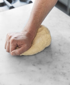 Impastate fino a ottenere un composto omogeneo, formate una palla e fatela lievitare in un contenitore coperto fino a che sarà raddoppiata di volume