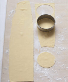Intanto, preparate il ripieno: raccogliete in una ciotola la ricotta, il gorgonzola a tocchetti, il grana e amalgamateli bene, mescolando. Riprendete la pasta, stendetela con l'apposita macchina e ritagliate tanti dischi di 8 cm di diametro.