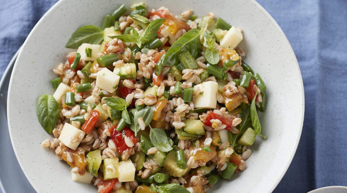 Un primo piatto vegetariano a base di cereali, condito con tante verdure e un pregiato formaggio. Al profumo di limone e basilico