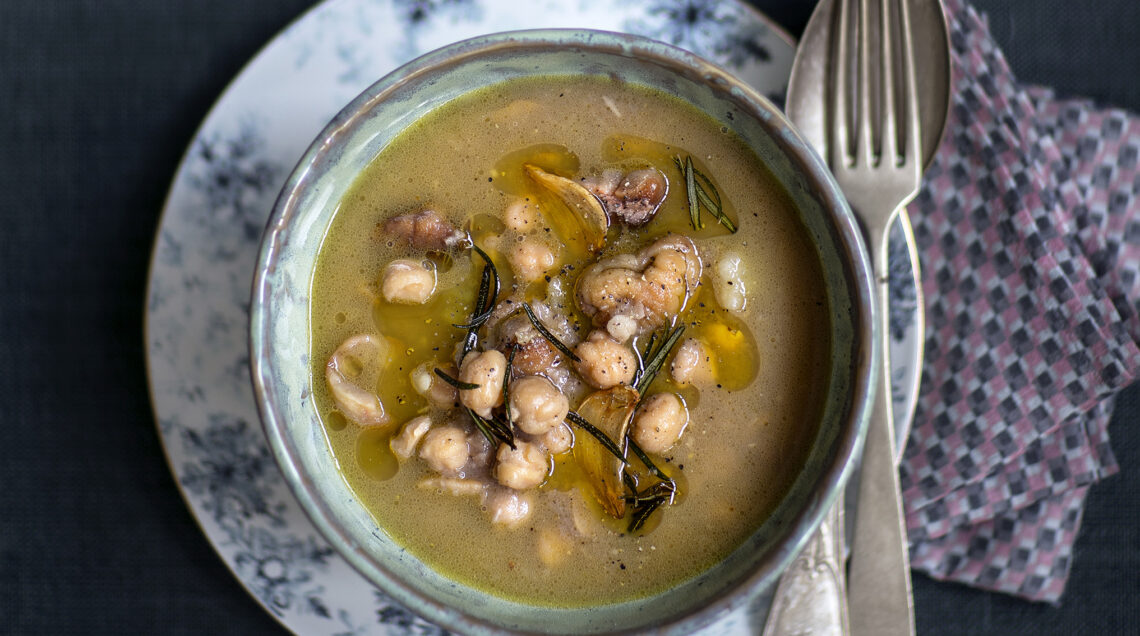 Le castagne, protagoniste di questo elegante conforti food al cucchiaio, legano il loro sapore ai ceci e alle patate profumando di aglio e rosmarino