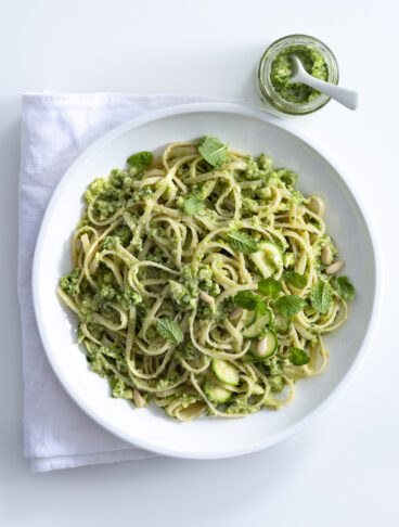 3 Mescolate tutte le verdure in un piatto, aggiungendo la rucola o gli spinacini, una manciatina di foglie di basilico, olio e sale.
