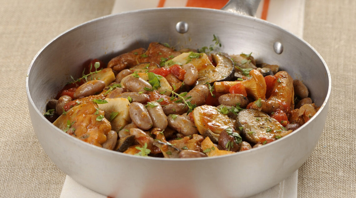Un contorno rustico, con finferli, porcini e borlotti freschi. Buono anche come secondo vegano
