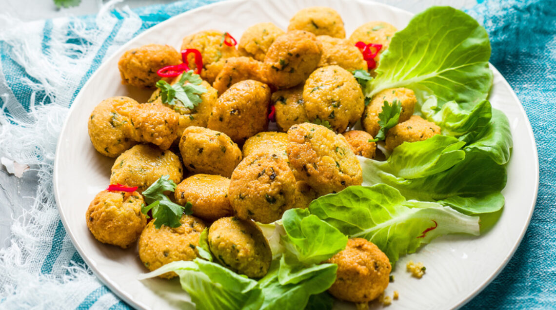 2 Formate tante polpettine di circa 2 cm di diametro e fatele dorare in abbondante olio di semi ben caldo (se avete un termometro, deve segnare 180°). Servitele calde, se vi piace, su un letto di insalata, guarnite con rondelle di peperoncino e foglie di coriandolo fresco.