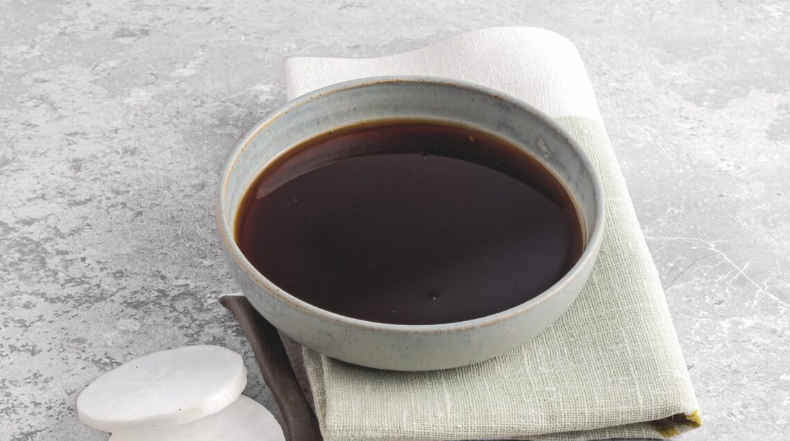 Trasferite sul fuoco, portate a bollore e cuocete per qualche minuto, finché la salsa si sarà addensata un poco. Lasciate intiepidire e aggiungete a piacere un po' di radice di daikon grattugiata.