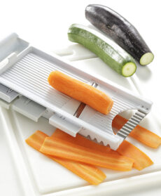 Se le fette di verdure fossero troppo larghe, tagliatele in 2 parti, sempre nel senso della lunghezza, usando un coltello a lama liscia.