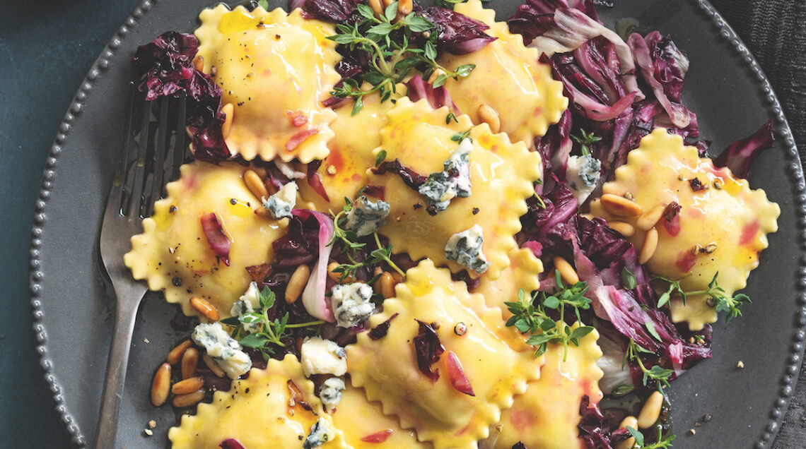 Un abbinamento ben riuscito tra un formaggio erborinato, verdura di stagione e pasta fresca: bastano pochi ingredienti e i ravioli del pastificio Rana diventano gourmet