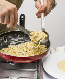 La ricetta tradizionale della cucina romana è stata rivisitata. La crema di fave crea un amabile equilibrio con la sapidità del cacio, regalando una ricetta tanto semplice quanto irresistibile