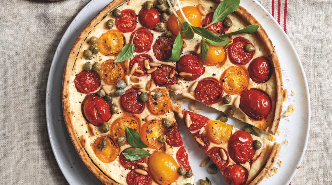 Con pomodorini colorati ed erbe aromatiche questa torta salata porta in tavola i sapori mediterranei