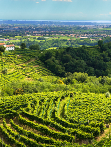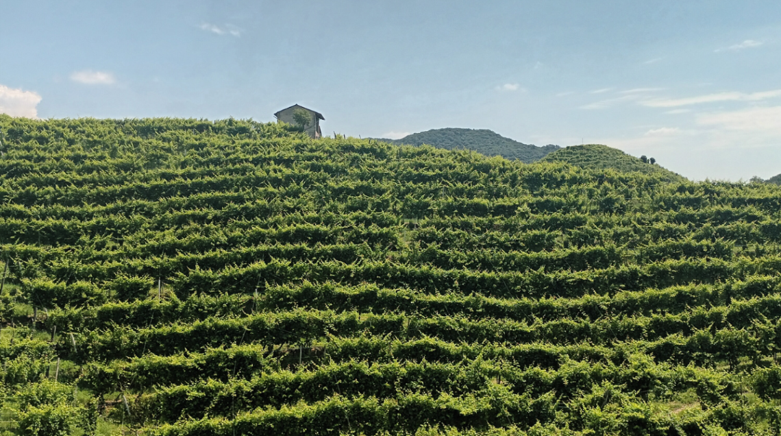 A nord di Treviso, la zona del Valdobbiadene Docg è un incanto bucolico: colline “a panettone”, forma che rivela la loro origine glaciale, dove l'intervento della mano dell'uomo, preponderante, ha creato, nel corso dei secoli, un paesaggio agrario definito “a mosaico”: ordinati appezzamenti vitati si intervallano al bosco, creando un puzzle di tonalità verdi. Qui la vite cresce aggrappata a terreni scoscesi, con pendenze che possono superare il 50%, e costringe i viticoltori a vendemmie eroiche. I grappoli, infatti, possono essere raccolti solo a mano, perché i cosiddetti “ciglioni” - pendii di terra, senza ricorrere all'uso di sostegni di pietra, come si fa altrove per creare i terrazzamenti – non possono essere percorsi da mezzi meccanici.
